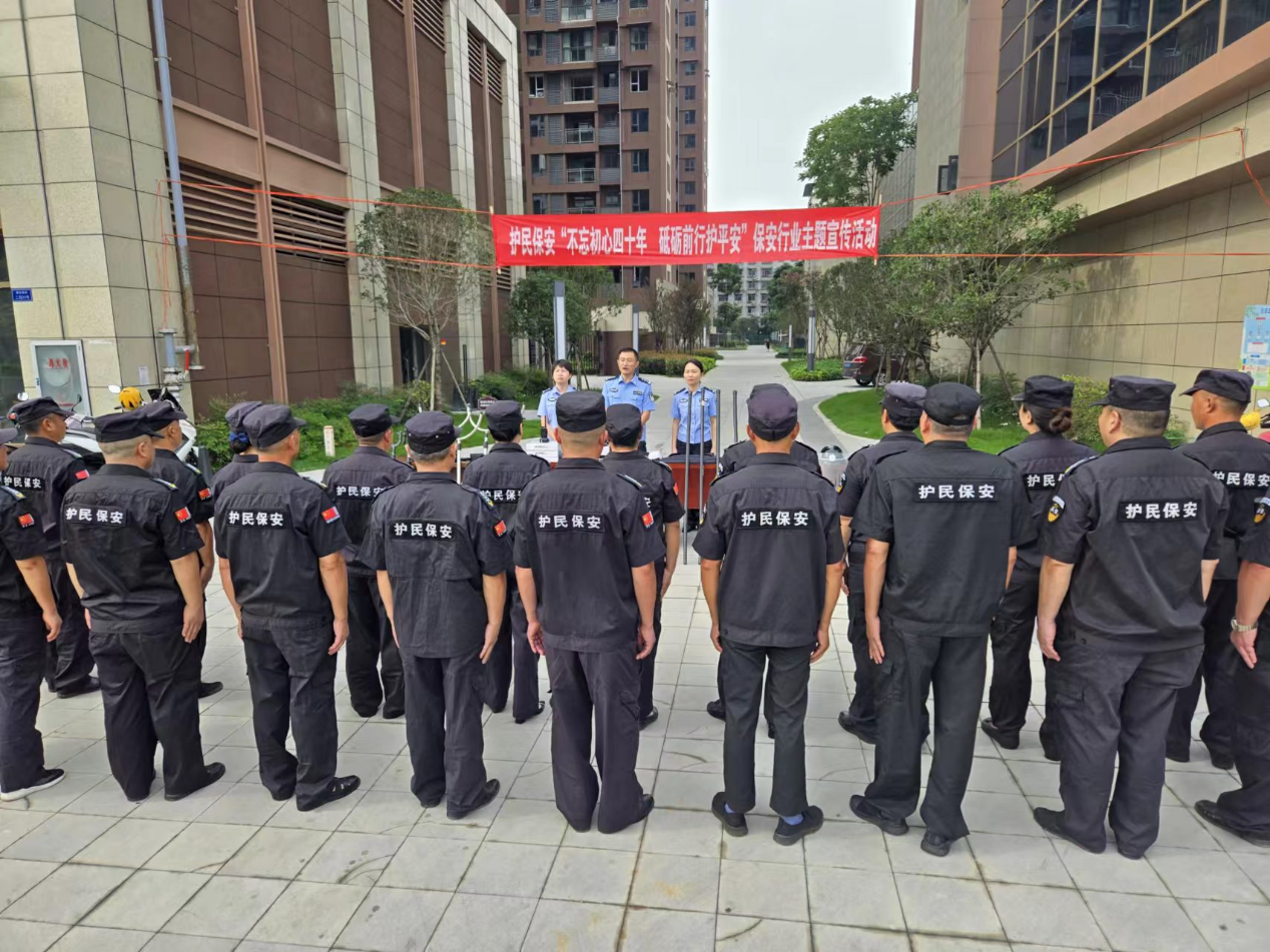 為進(jìn)一步加強(qiáng)安全宣傳,提升保安隊(duì)伍形象,動員廣大保安員積極投身全國公安機(jī)關(guān)“夏季行動”,協(xié)助做好維護(hù)社會治安和防汛救災(zāi)各項(xiàng)工作,深入推動公安警務(wù)工作與保安行業(yè)聯(lián)勤聯(lián)動,資陽市雁江區(qū)護(hù)民保安服務(wù)有限責(zé)任公司積極開展“不忘初心四十年,砥礪前行護(hù)平安”保安行業(yè)主題宣傳活動。