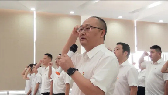 活動(dòng)伊始,全體人員莊嚴(yán)肅立,齊聲高唱《中華人民共和國國歌》,激昂的旋律瞬間點(diǎn)燃了現(xiàn)場的熱烈氛圍,讓大家感受到了作為中華兒女的自豪與責(zé)任。隨后,在集團(tuán)黨委書記的帶領(lǐng)下,全體黨員面向鮮紅的黨旗,重溫入黨誓詞。一句句鏗鏘有力的誓言,回蕩在整個(gè)會(huì)場,黨員們表達(dá)了對黨的無限忠誠和為共產(chǎn)主義事業(yè)奮斗終身的堅(jiān)定決心 。